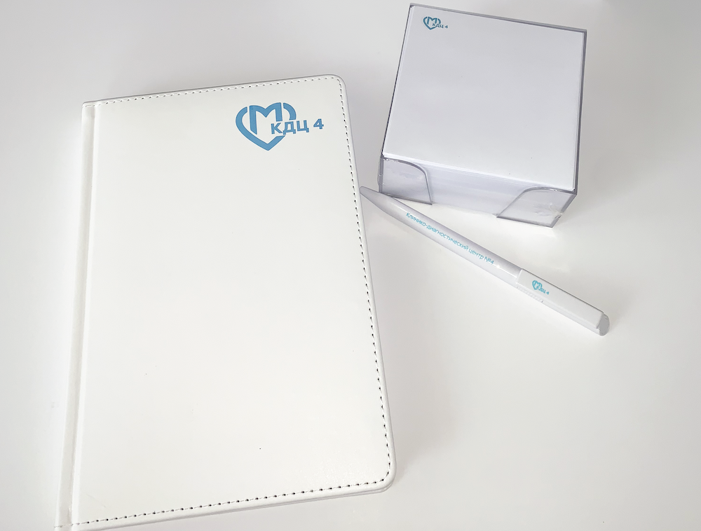 На День Медика для Клинико-диагностического центра №4 г. Москвы были разработаны фирменные ежедневники, календари, ручки и кубарики в прозрачных боксах. В четком соответствии с требованиями технического задания и поставкой в утвержденные Заказчиком сроки.